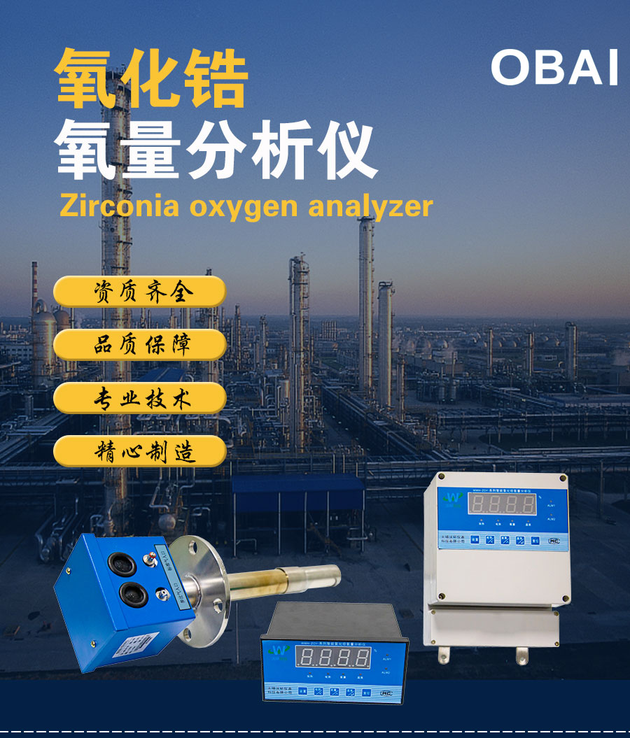 OBAI-ZO4系列智能氧化鋯氧量分析儀有ZOY型氧化鋯探頭(一次儀表)和ZOY氧量變送器(二次儀表)二部分組成。